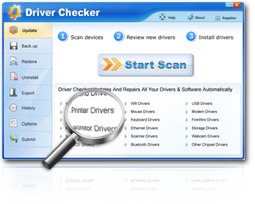 Driver Checker bilgisayarınıza bağlı bulunan aygıtları tarar, onlar için en uygun sürücüyü bulur ve güncelleştirir. Bunun yanında hatalı sürücüler varsa onarır. Güncellediği Sürücüler: •Bluetooth Sürücüleri